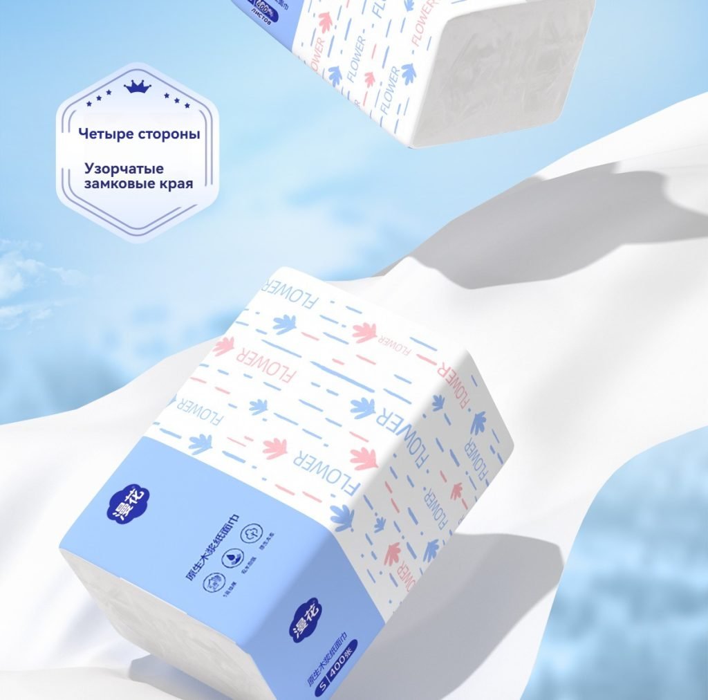 Бумажные салфетки M синего цвета от Маньхуа, 400 листов в упаковке, 30 упаковок в коробке