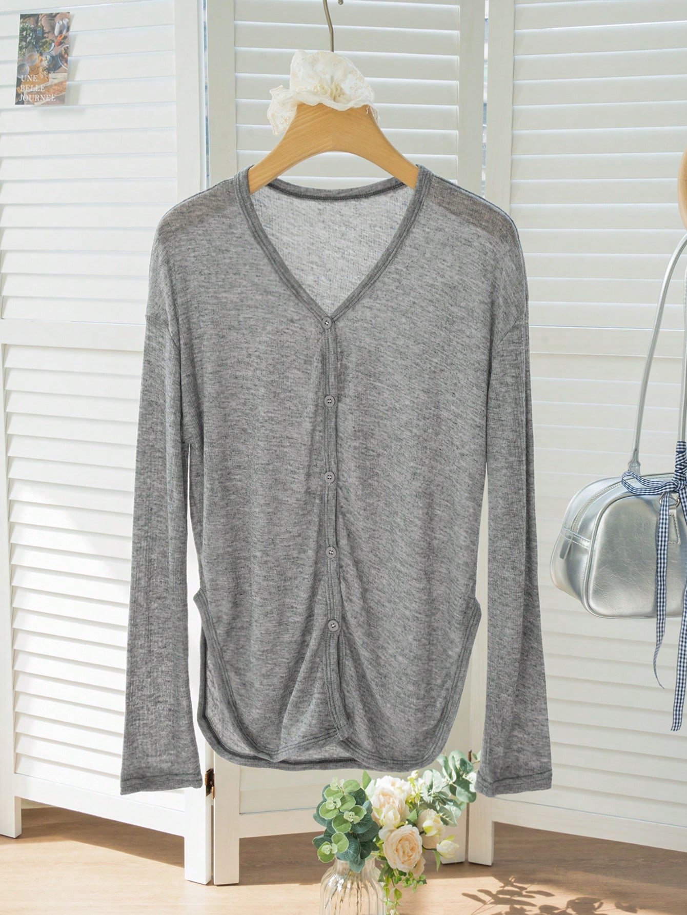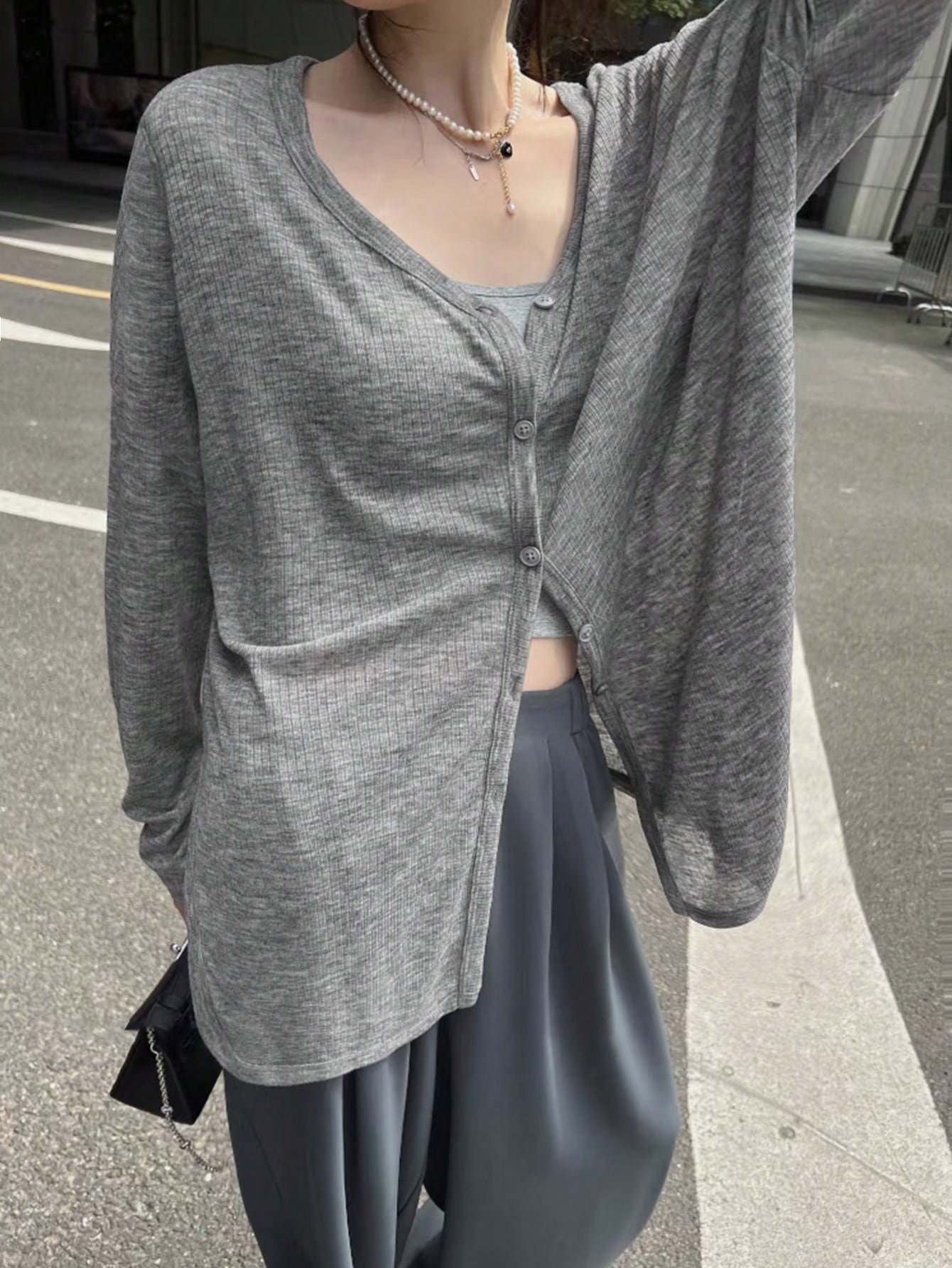 Легкий летний кардиган: улощенный, 광ляный, защитный от солнца, серый,_relaxed-стиль