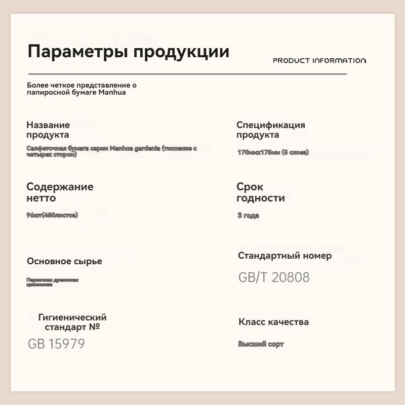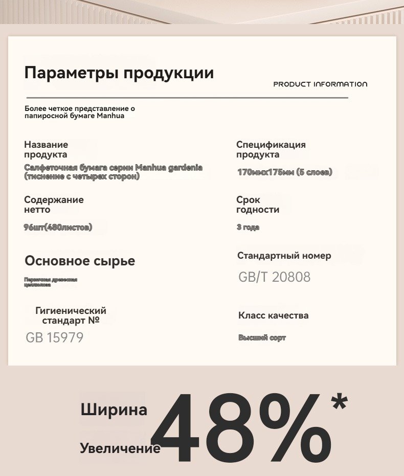 Меловые салфетки рулонные Маньхуа «Гарденция» – 480 упаковок в коробкесом668.90Select options