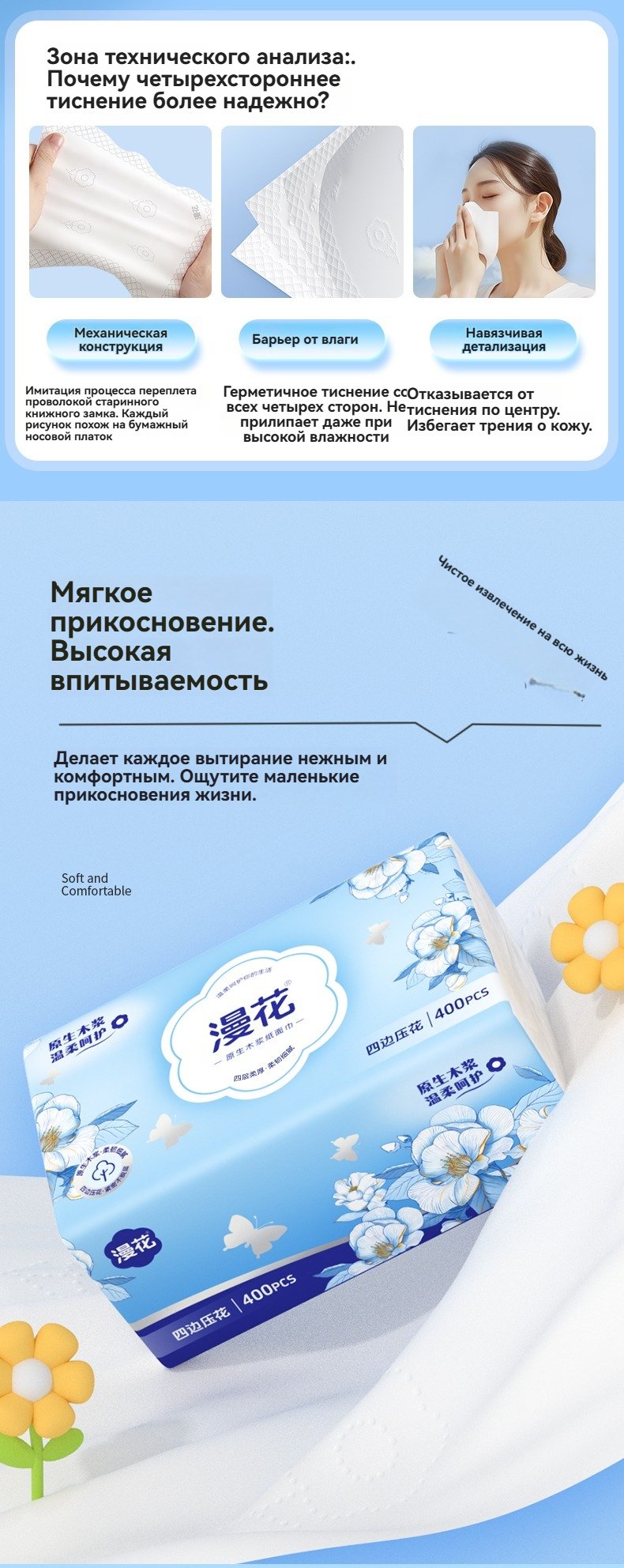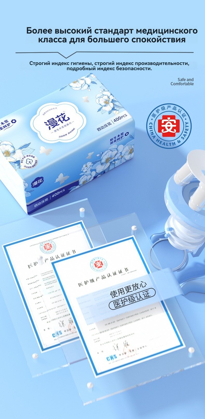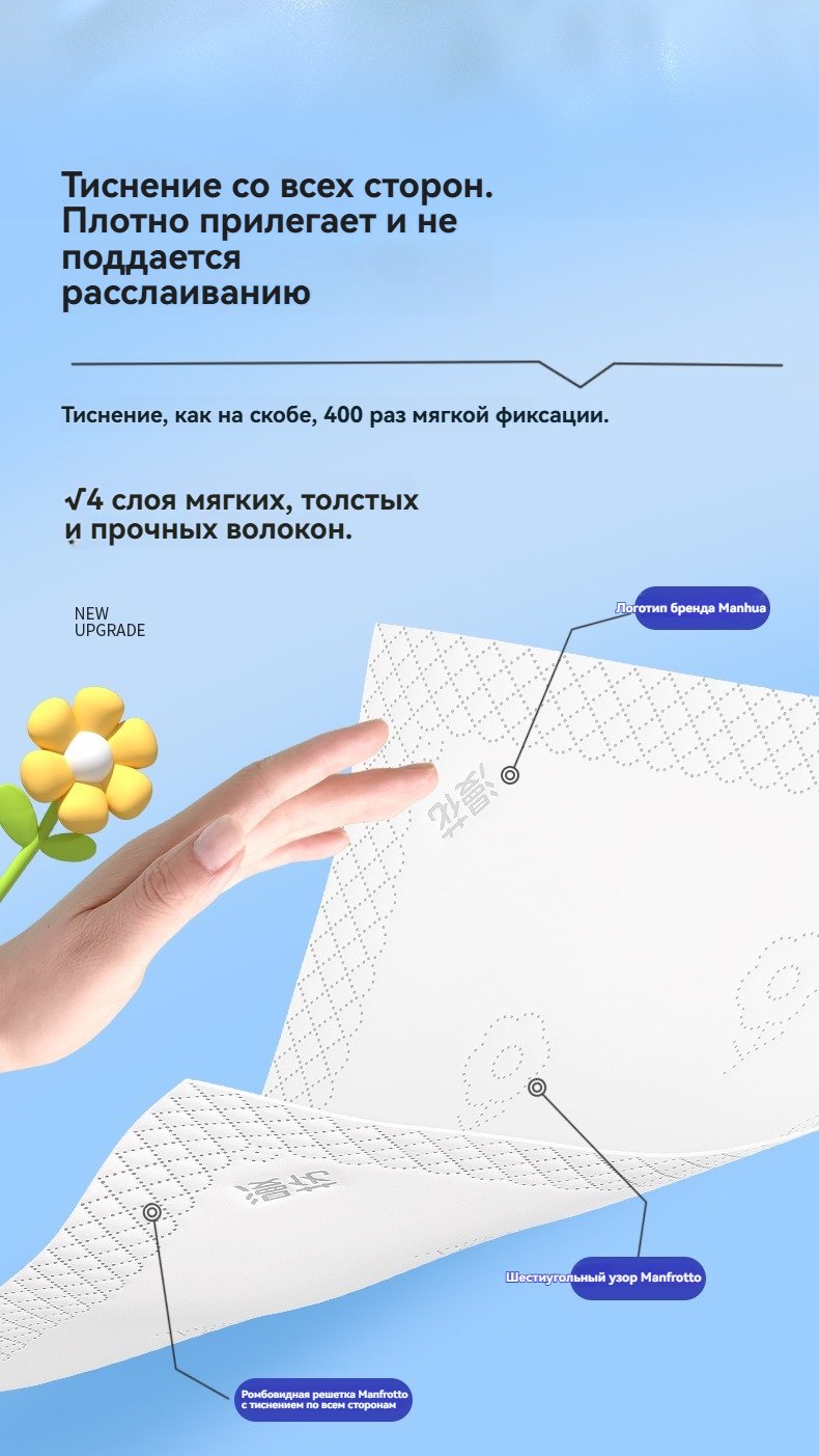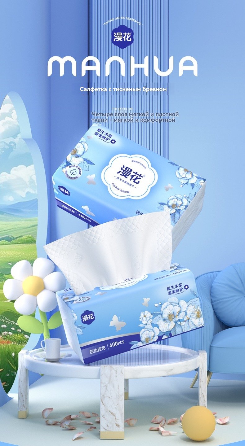 Меловые салфетки рулонные Маньхуа «Синяя Цамелия» – 400 листов, 40 упаковок в коробкесом1,672.30Select options