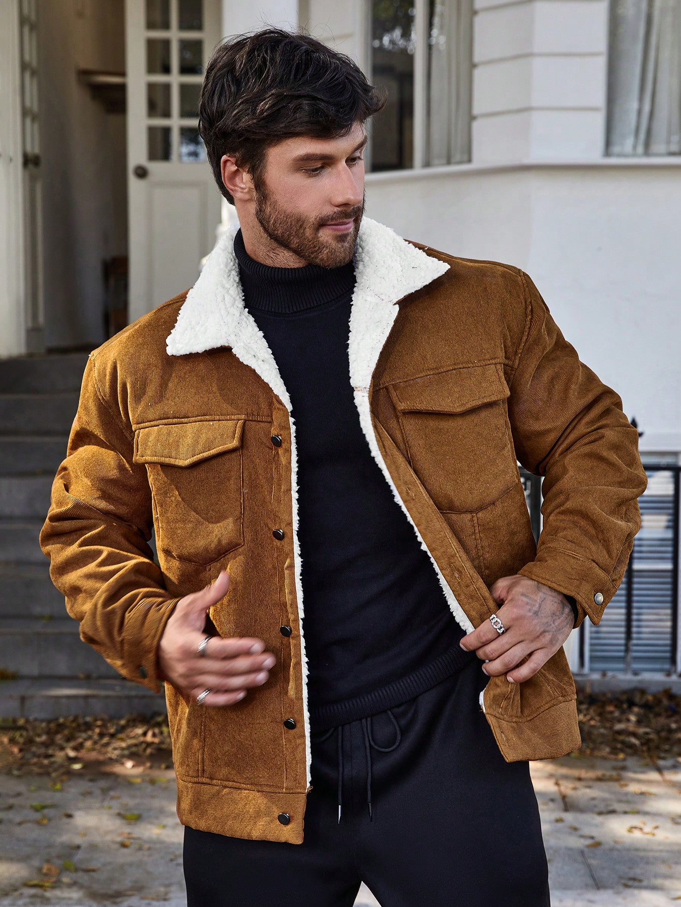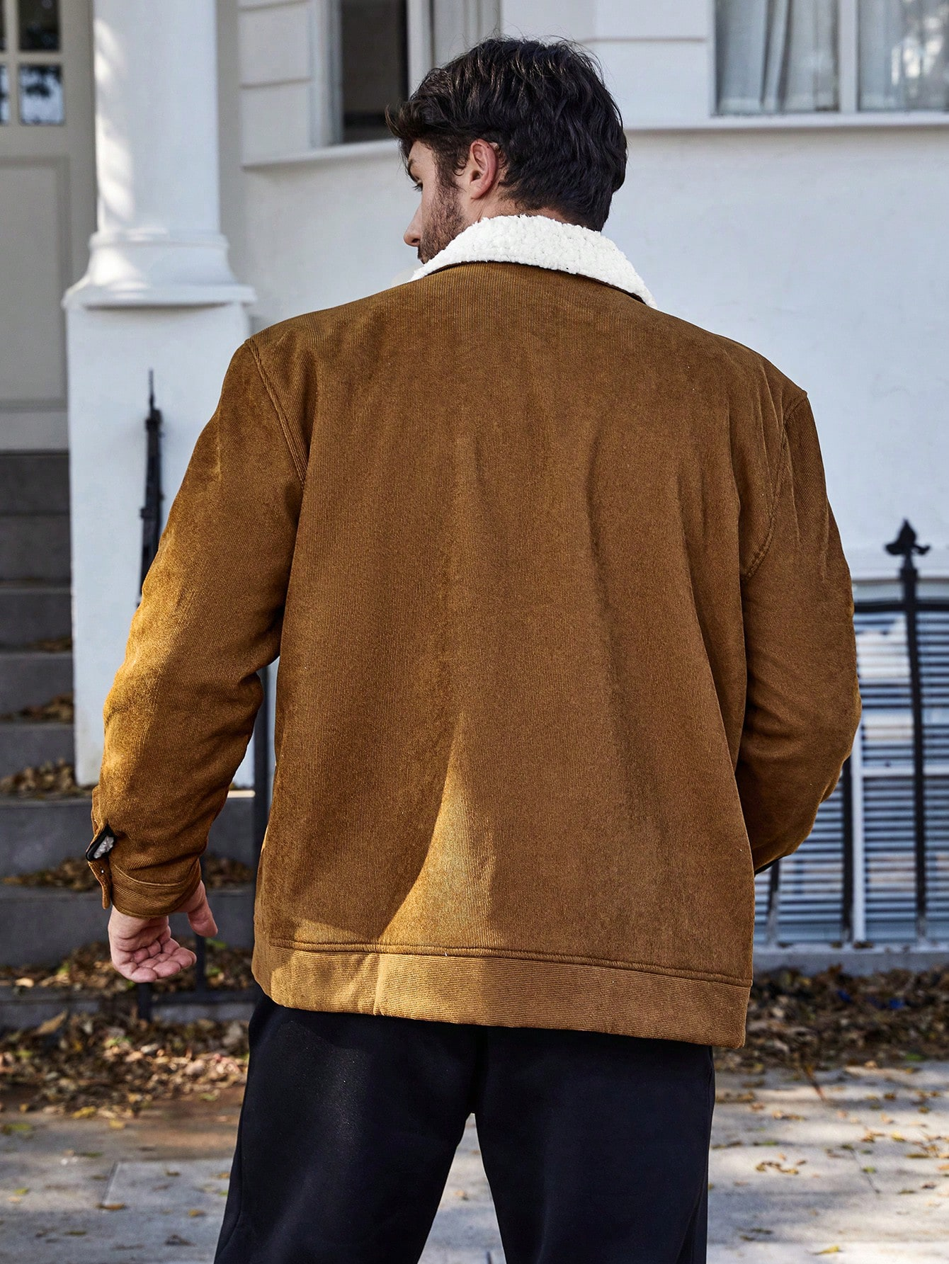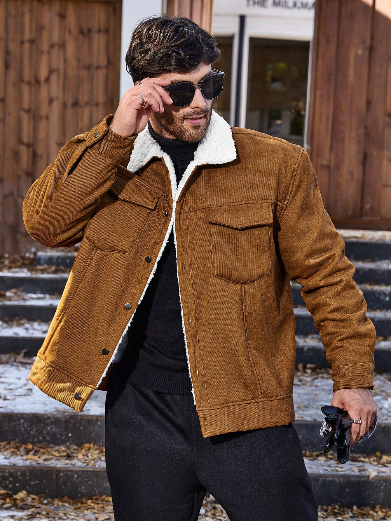 Мужская куртка из джинсового материала с воробьинкой, из флокса, с отложным мехом