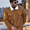 Мужская куртка из джинсового материала с воробьинкой, из флокса, с отложным мехомМужская куртка из джинсового материала с воробьинкой, из флокса, с отложным мехом
