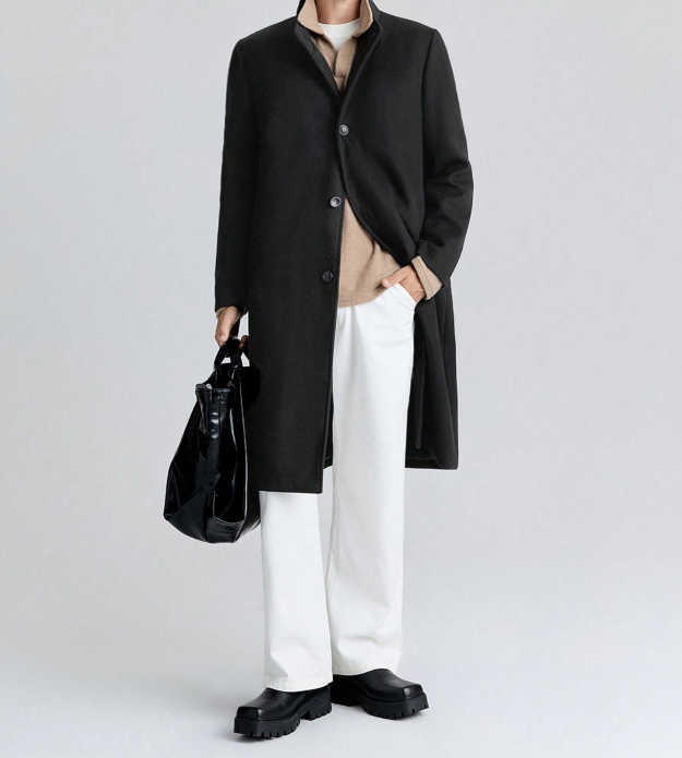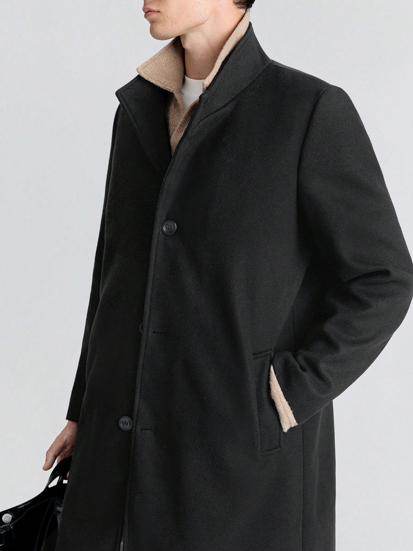 Мужское пальто из шерстяной ткани, ниже коленей, чёрного цвета, утеплённого, с высоким воротником, средней длины, новый образец для осени и зимысом1,900.00Select options