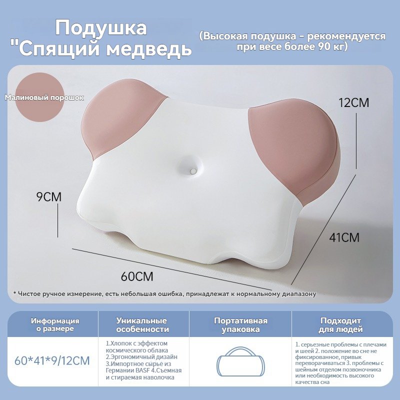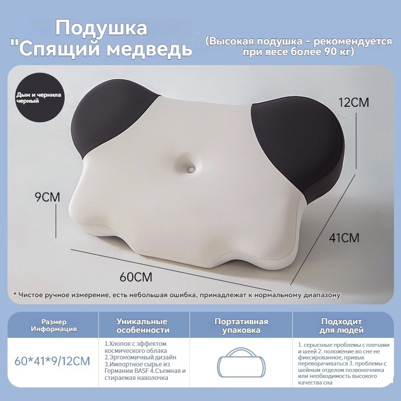 Ортопедическая памятьная подушка из спейс-пены в форме мишки с облачной мягкостью и эффектом улучшения сна