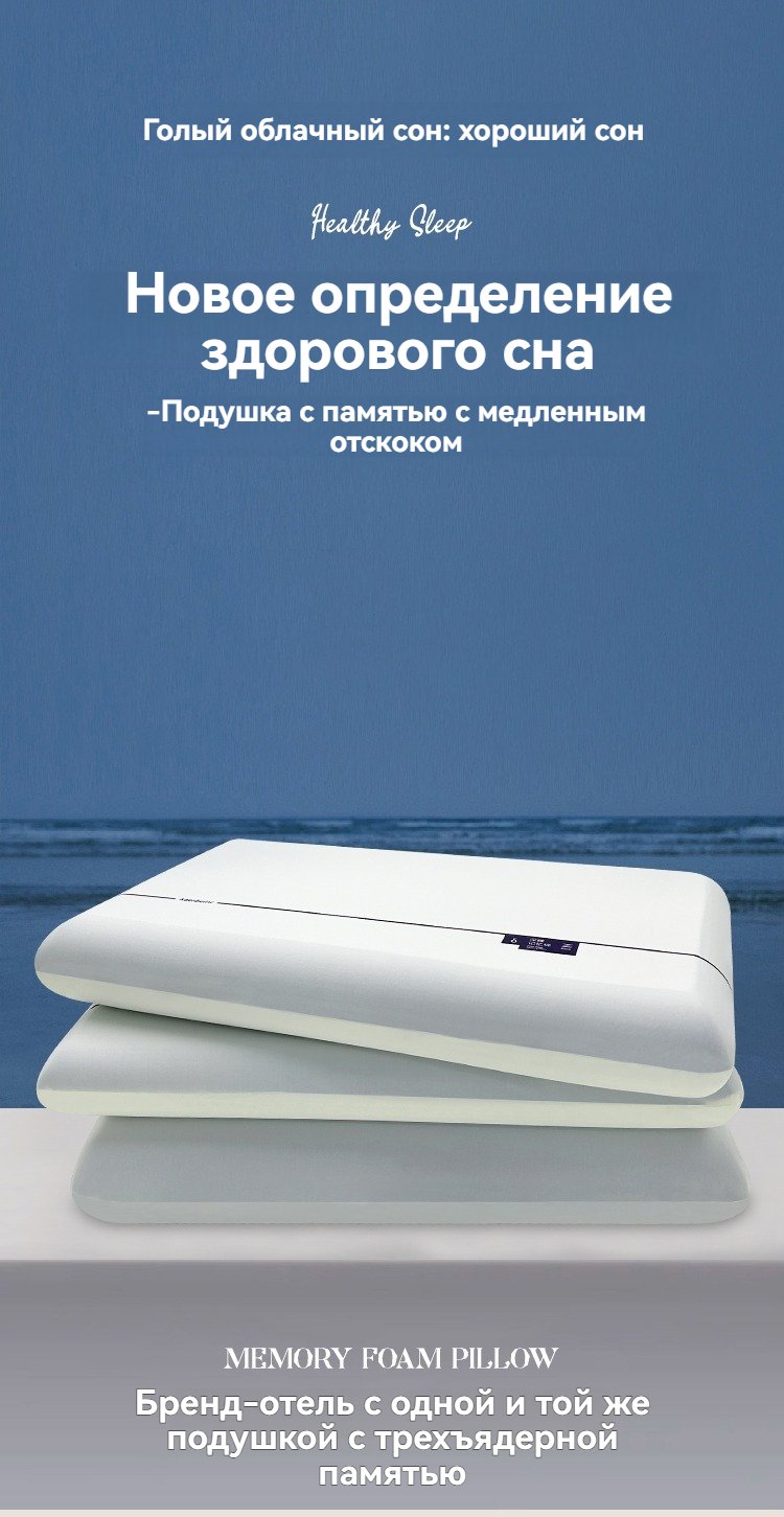 Подушка памяти “Облако” без гравитации с медленным восстановлением формы — сверхмягкая, поддерживающая шею, улучшающая сон, для одного человека, аналог отелей