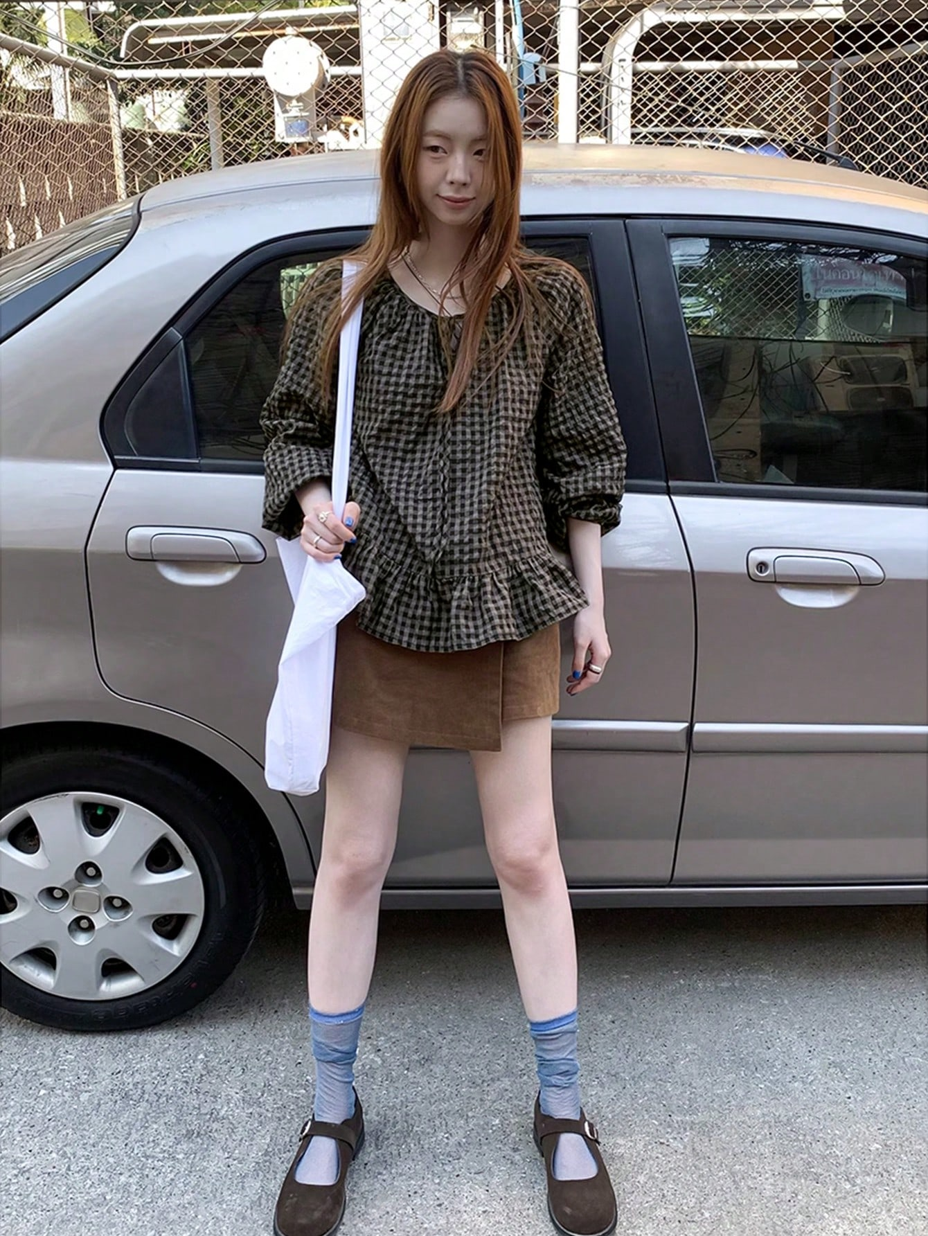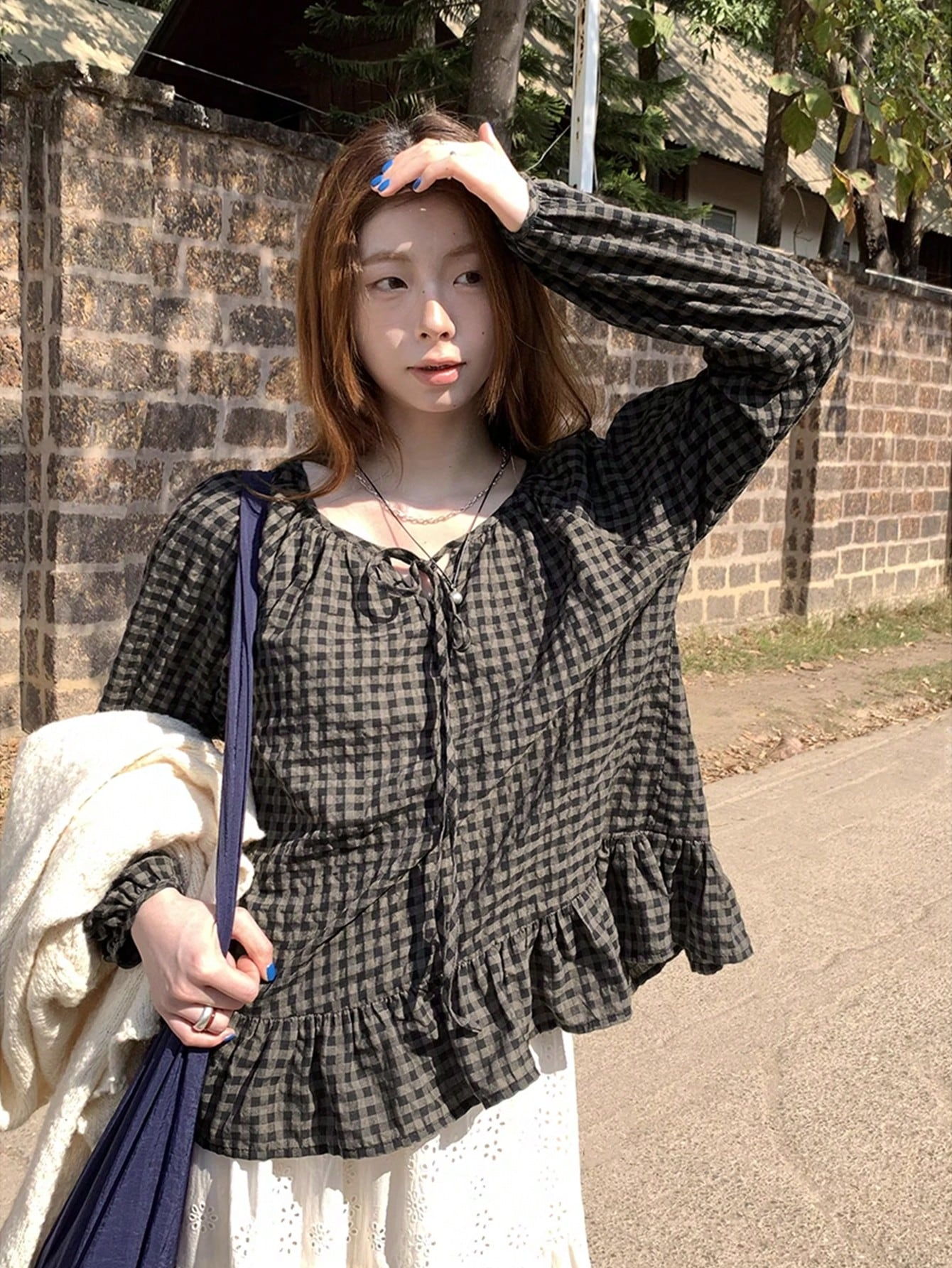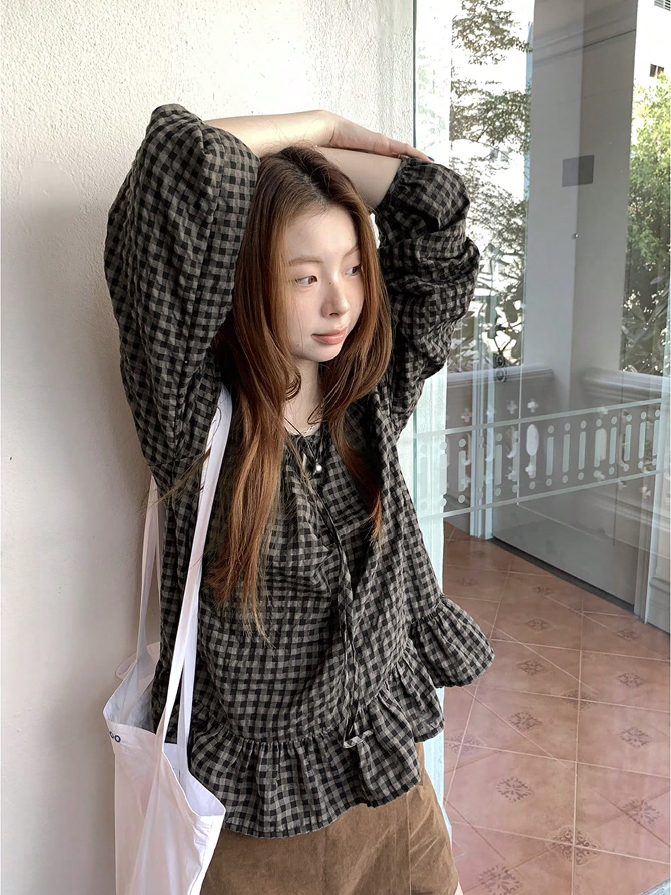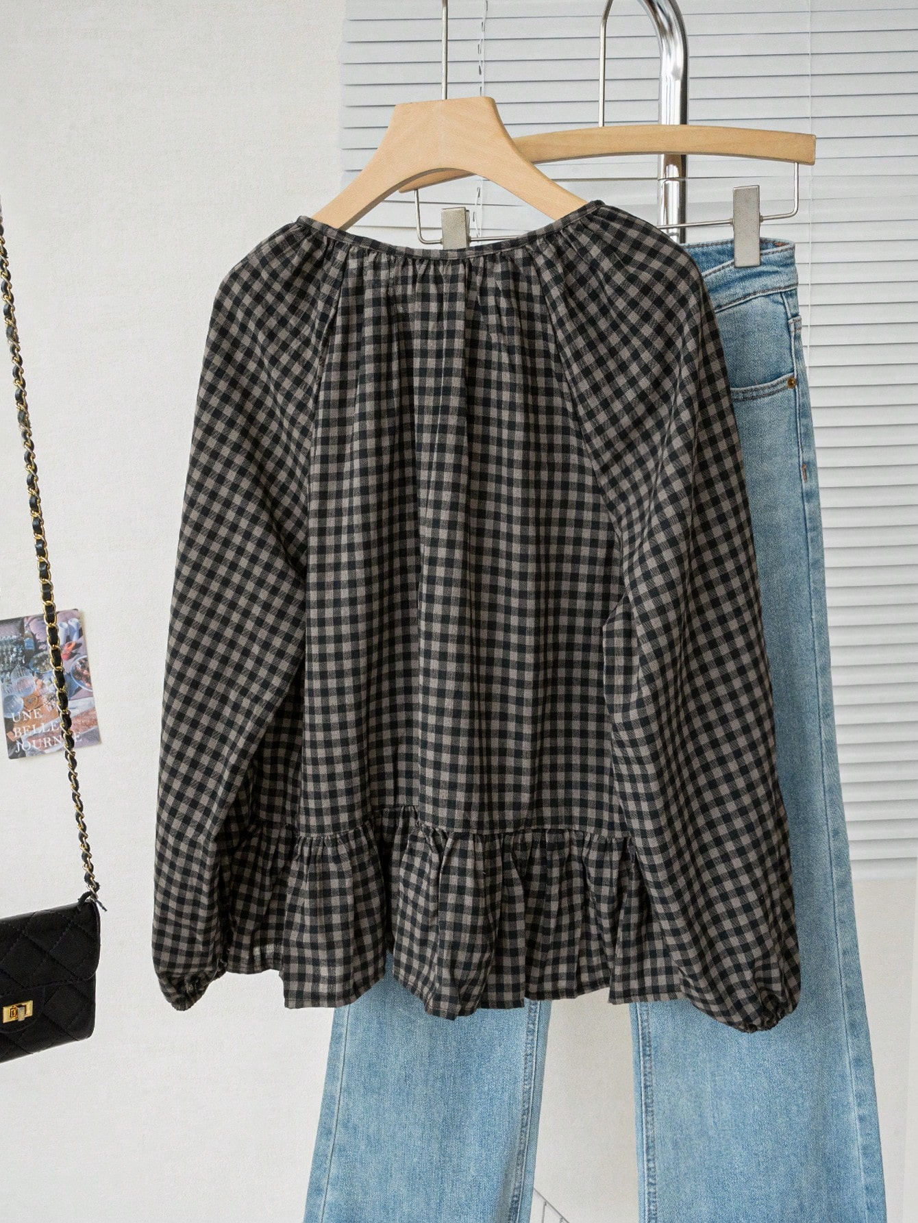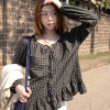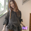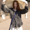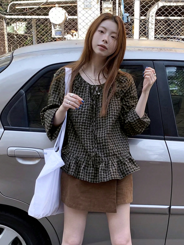 Ретро клетчатая рубашка весенняя, с расслабленным стилем, свободным кроем, висячими рукавами, визуально стройная