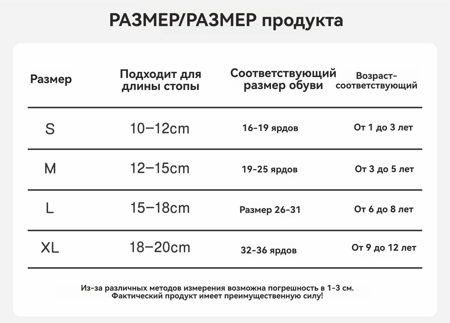 Размер :S ;Длина стопы : 10-12cm ;Размер обуви : Размер 16-19 ;Возраст : 1-3 лет