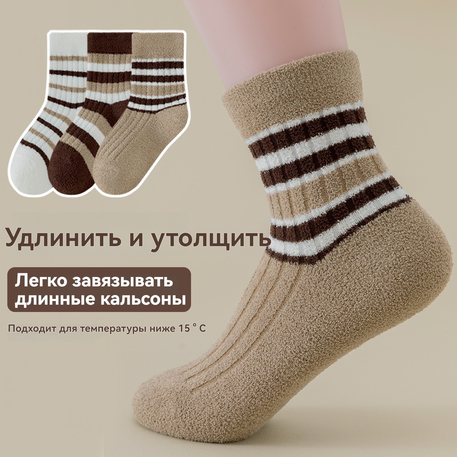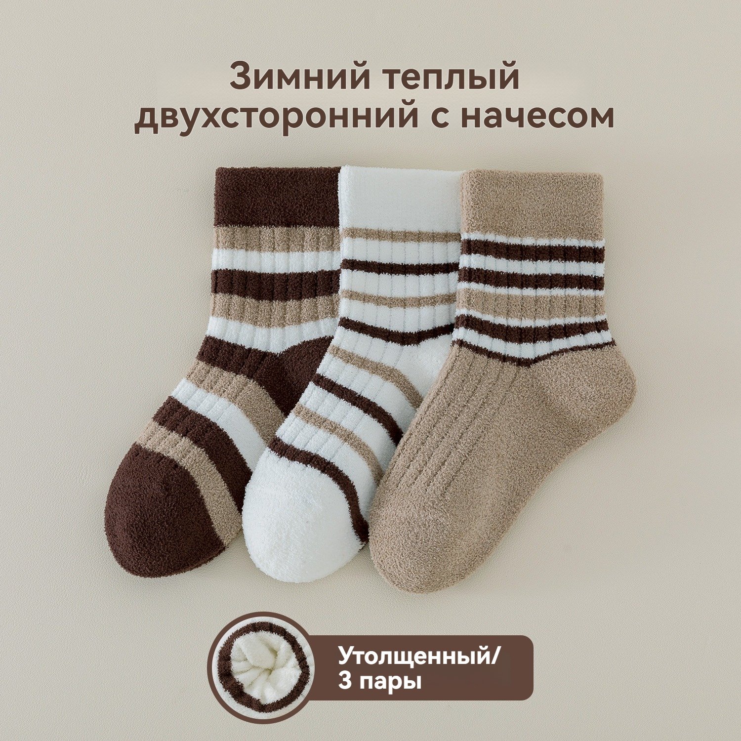 Толстые зимние хлопковые носки, 3 пар