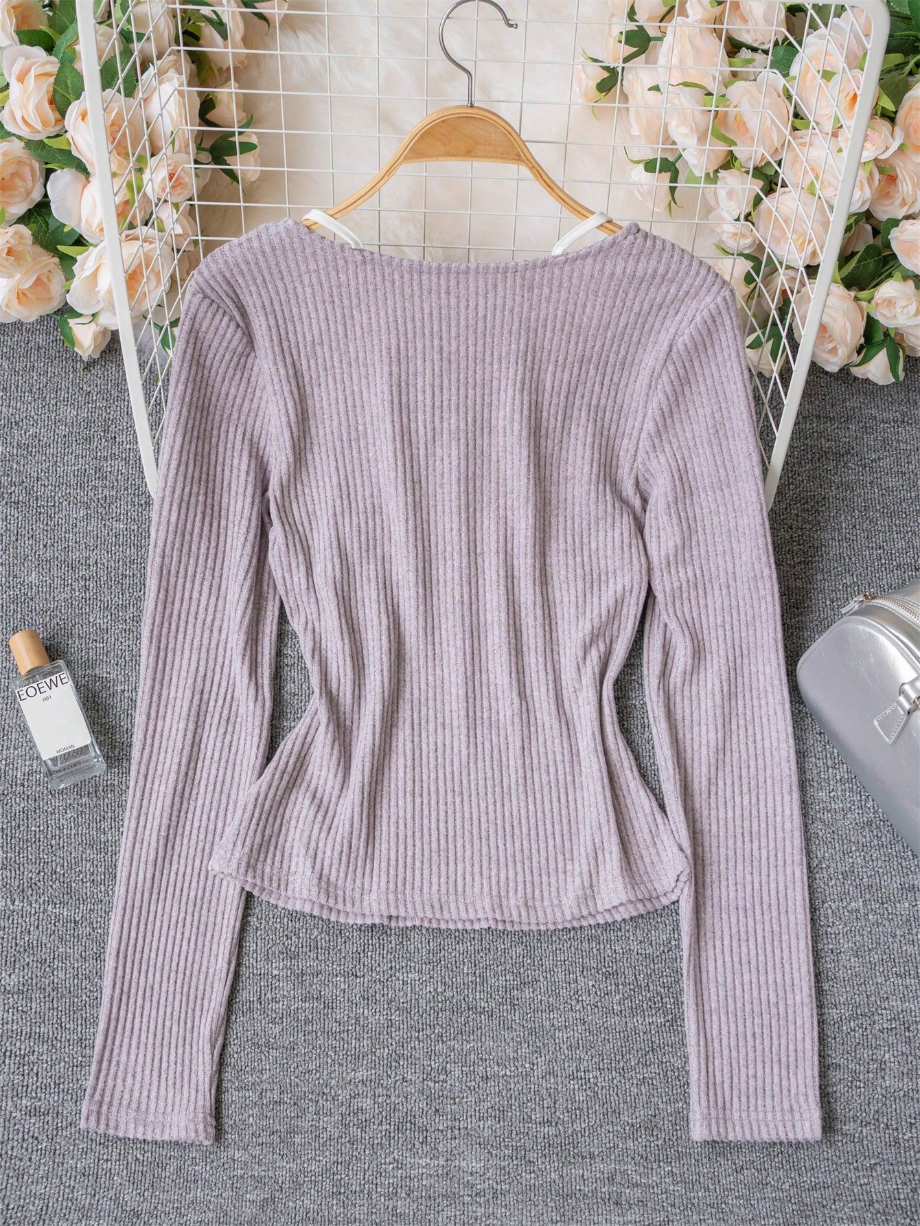 Фиттованный фиолетовый топ-базовый с вставками кружева (для наложения)Фиттованный фиолетовый топ-базовый с вставками кружева (для наложения)